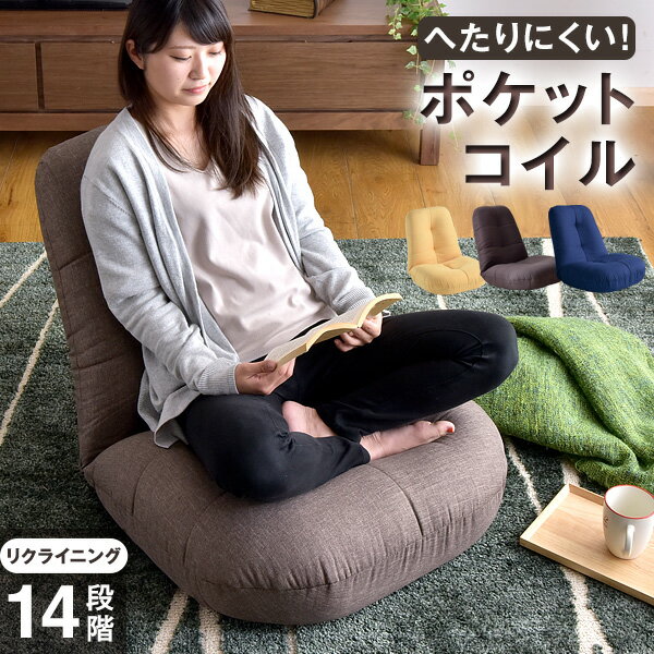 へたりにくいポケットコイル!《送料無料》 座椅子 14段階 リクライニング ポケットコイル チェアー 座いす コンパクト 座イス 1人掛け おしゃれ ソファー 一人掛け ソファ 椅子 チェア ファブリック フロアチェア