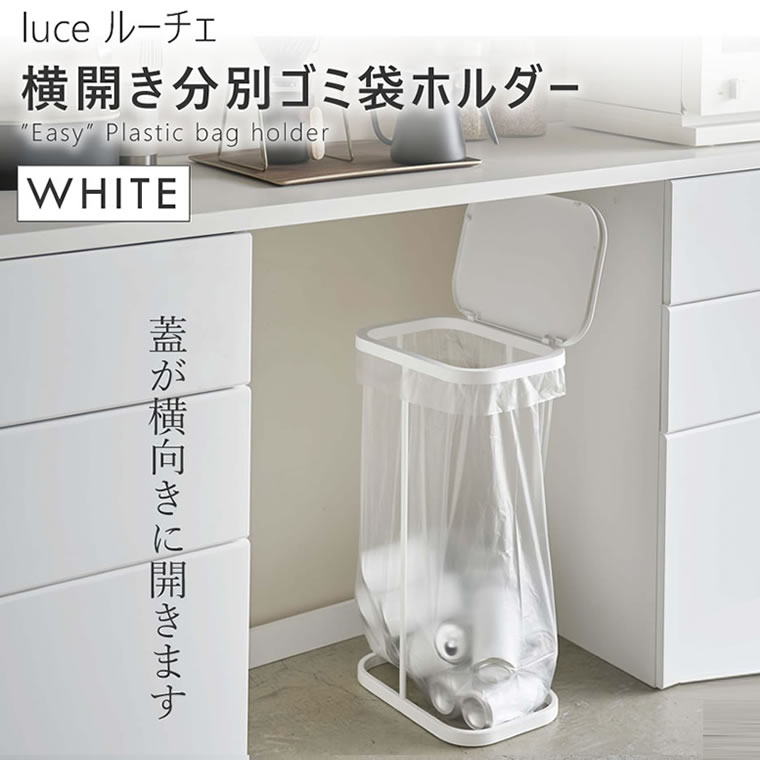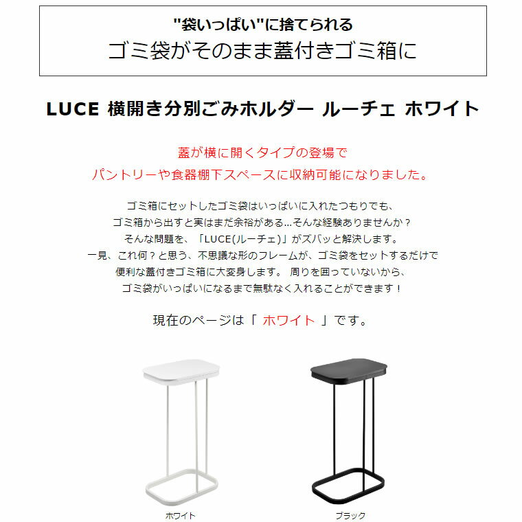 <仕様>◆サイズ:約W22xD34xH56cm◆重量:約1.3kg◆蓋開口部:約W19xD29cm◆蓋開口時最大高さ:約77cm◆適応サイズ:30〜45L用ポリ袋(目安)◆付属品:緩衝材、六角レンチ◆カラー:ホワイト◆耐熱温度:80℃、耐冷温度:-40℃◆組立式◆品質表示:蓋/ポリプロピレン、本体/スチール(粉体塗装)蓋が横に開くからパントリーや食器棚下スペースに収納可能なゴミ箱。